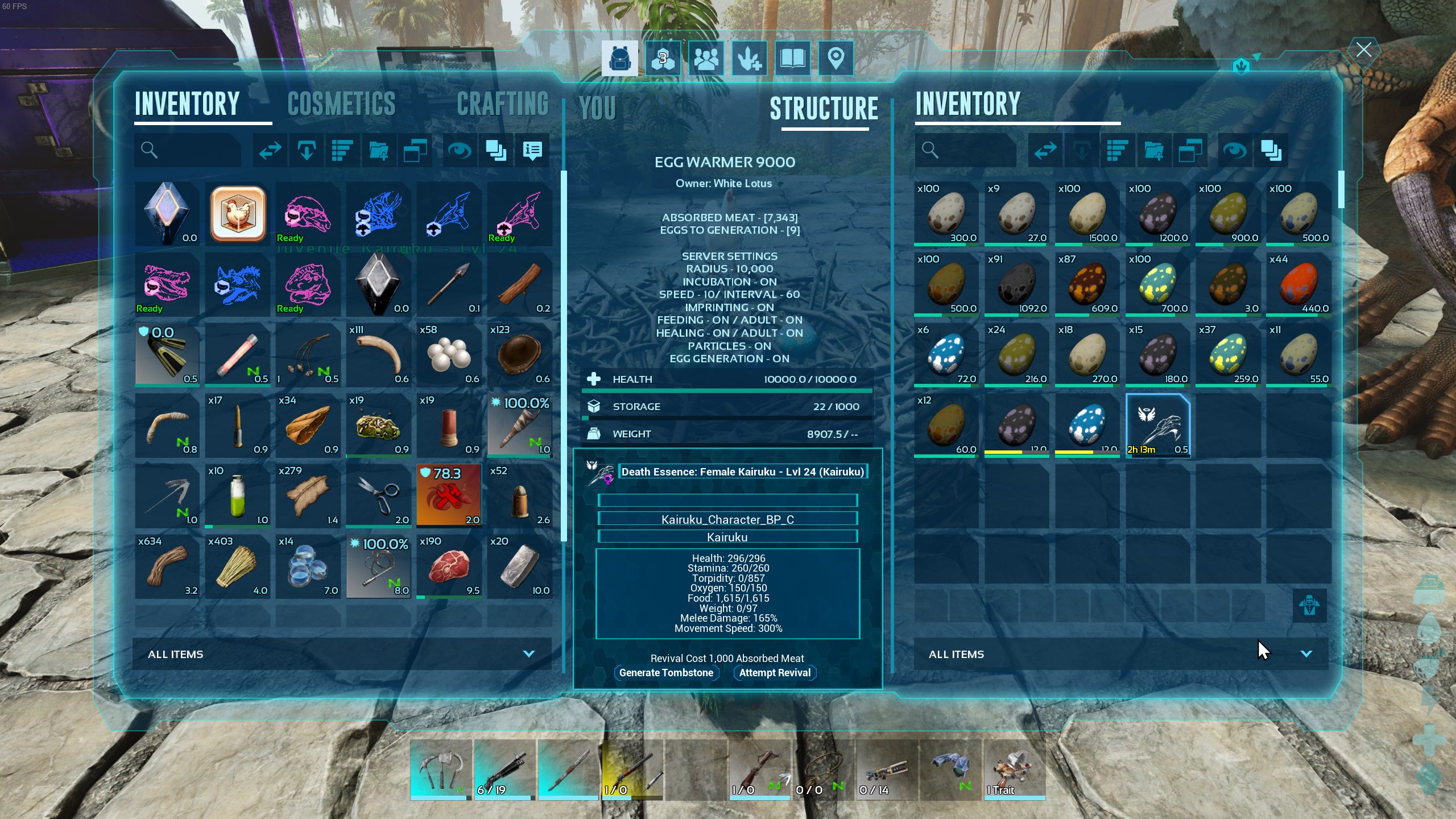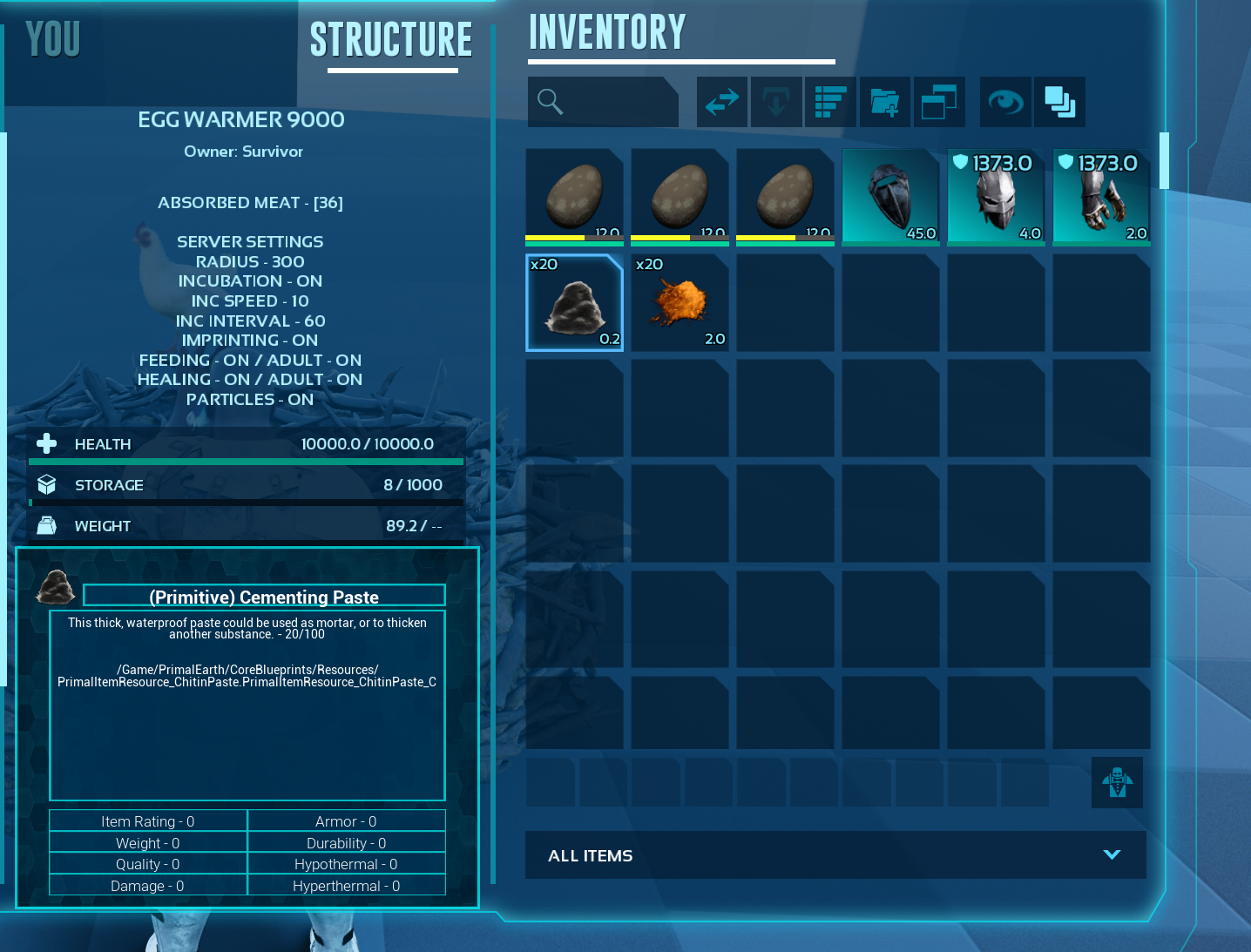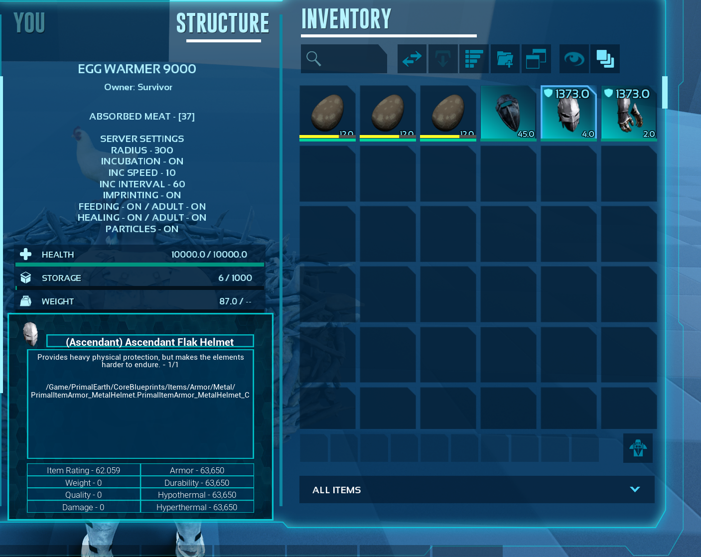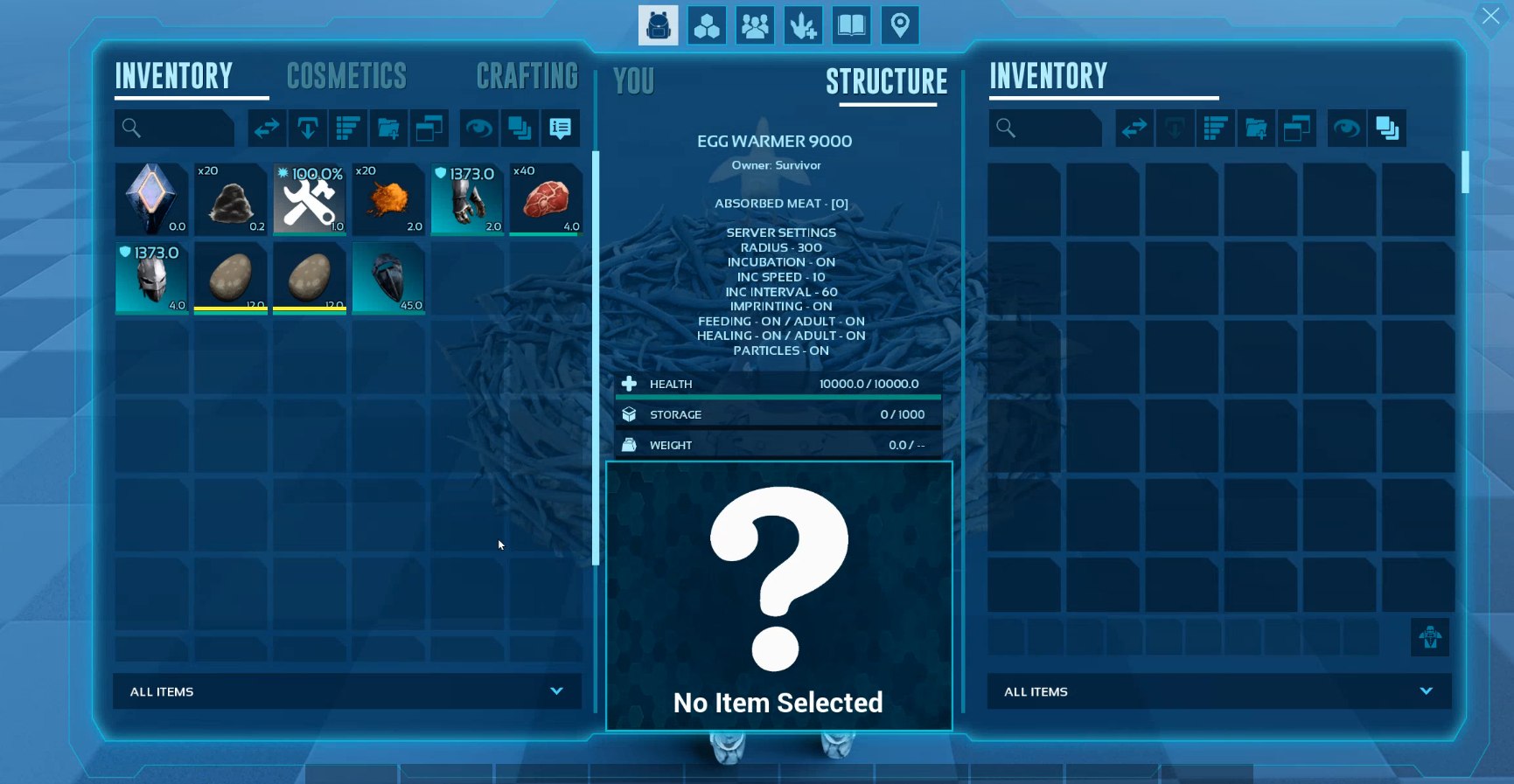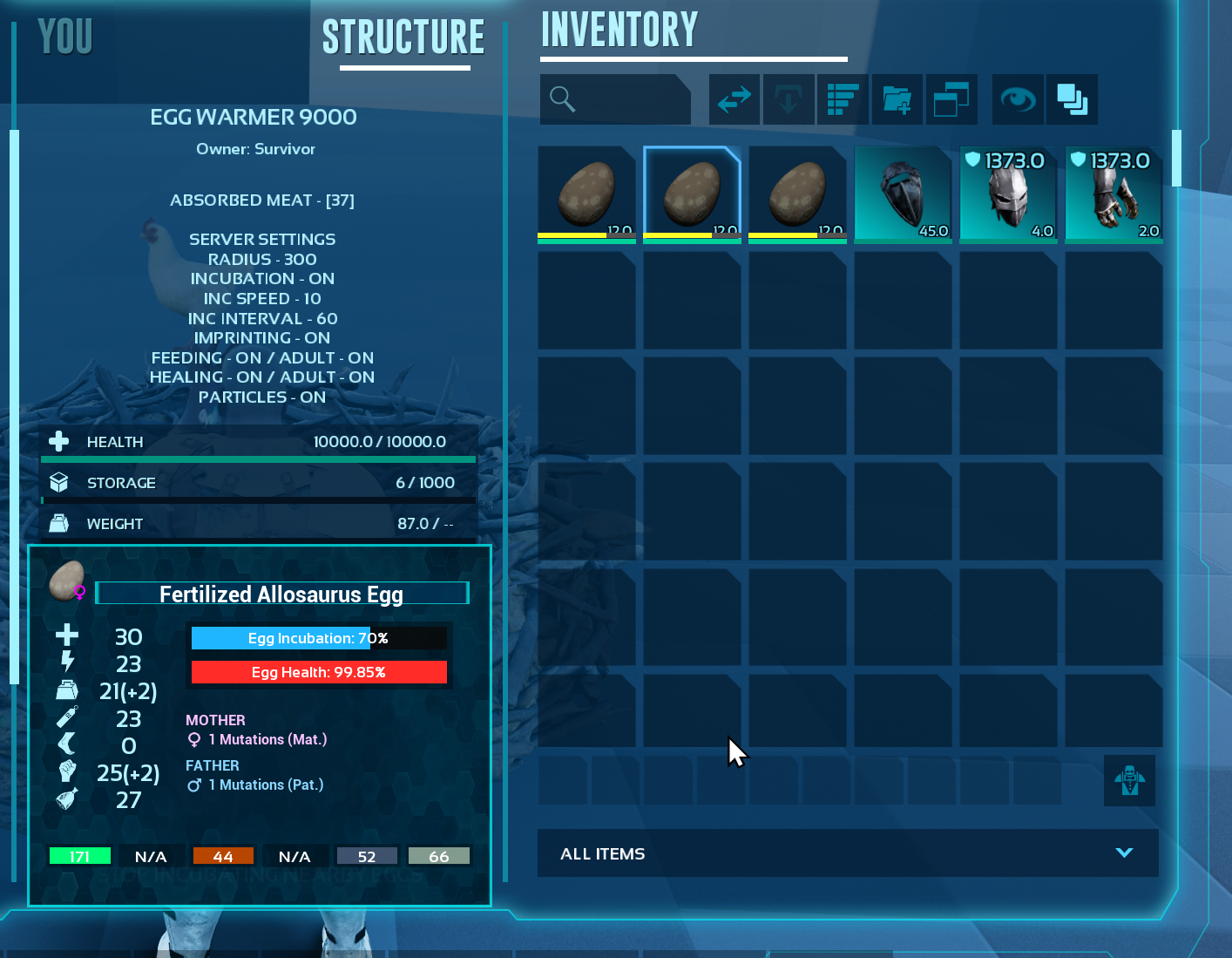 | Enable/Disable egg incubation inside the structure | |||||