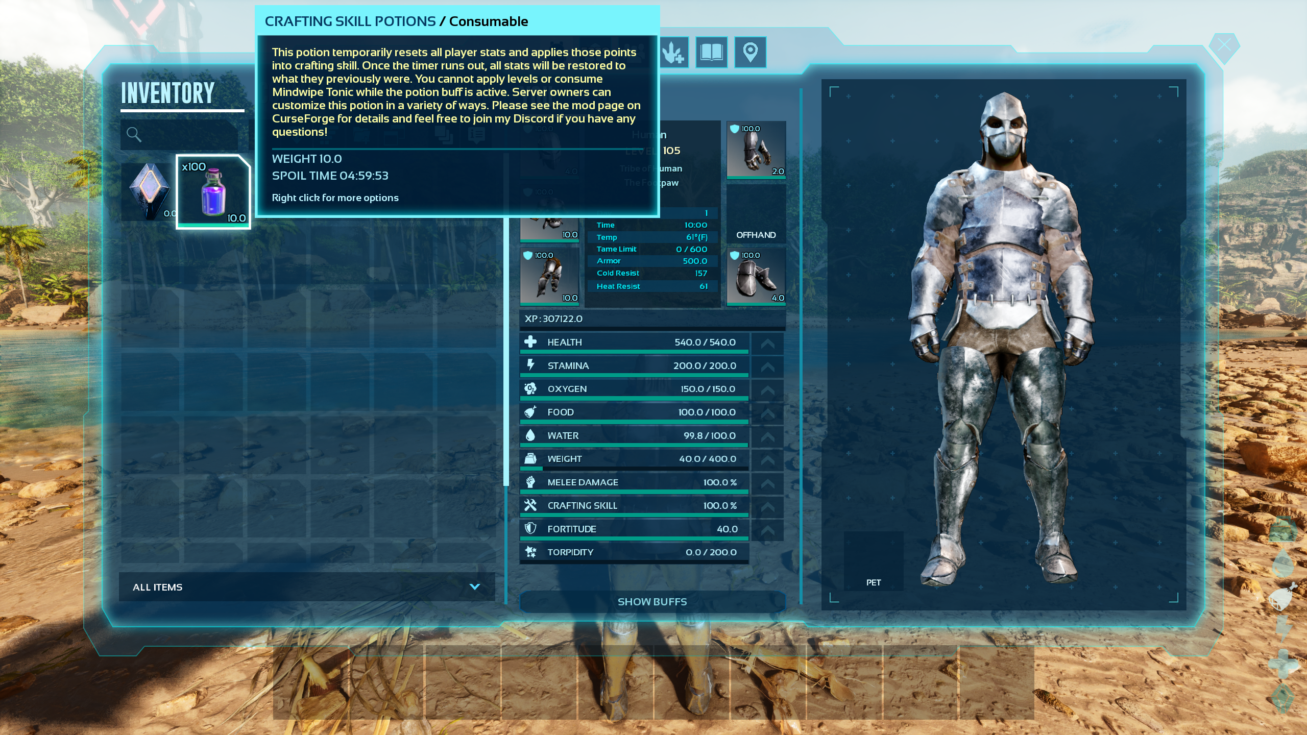A potion that resets stats and applies all points into crafting skill, then returns your stats to normal once the buff runs out without wiping engrams.