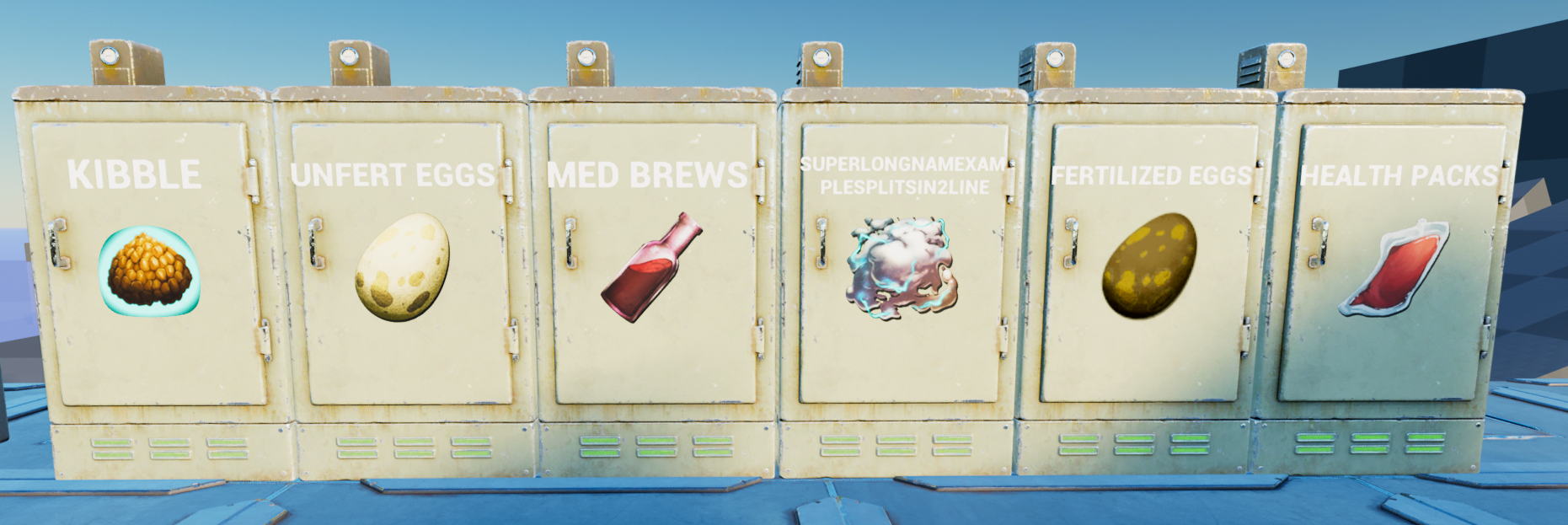 UPDATED! Custom cosmetic to display an item icon and the name of the storage container(Vault, Fridge, Cryofridge, Large&Small Storagebox, (Tek)Trough, preserving bin)