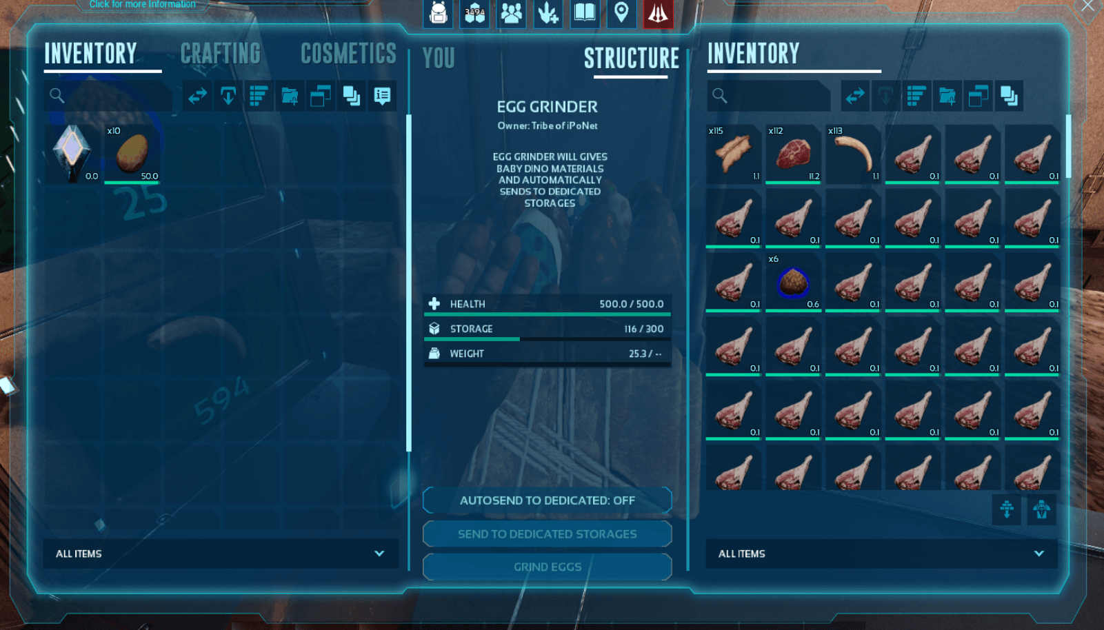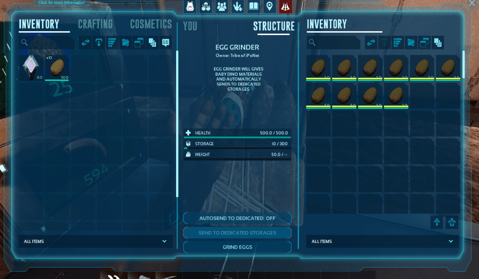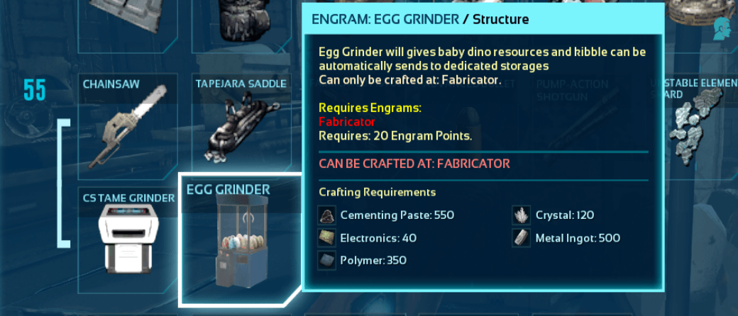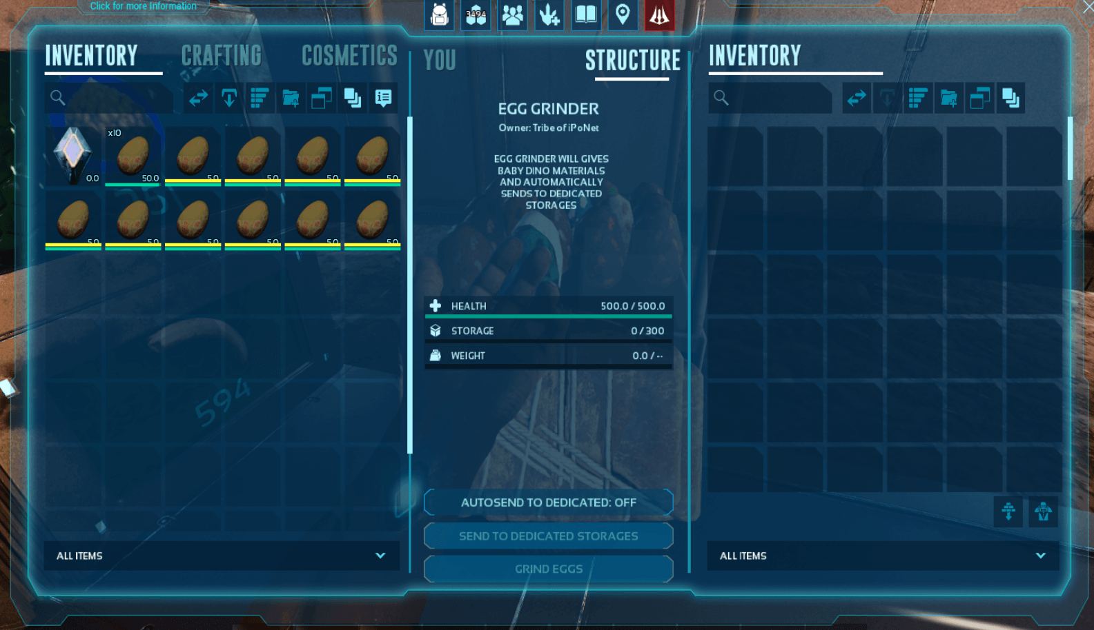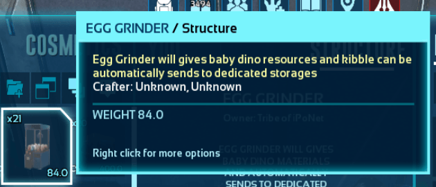 Turns your fertilzed egg to kibble and resources then send to dedicated storages