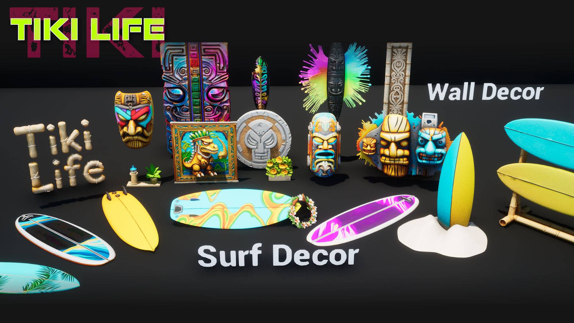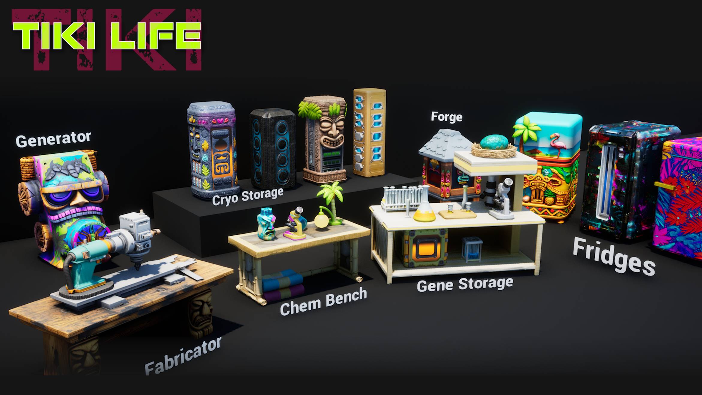 A collection of Tiki styles and summer vibes! A full build kit, tons of decorations and skins for most structures in the game!