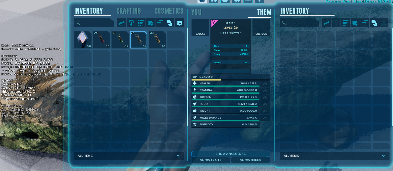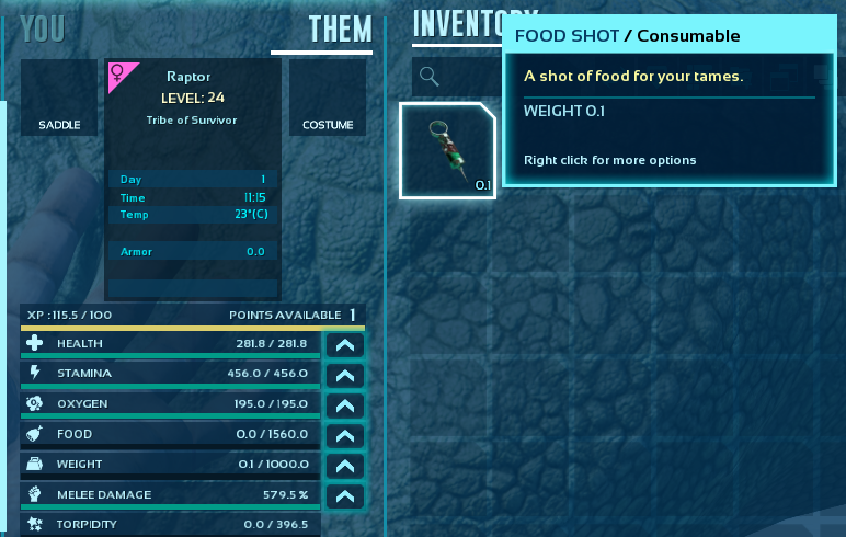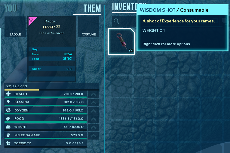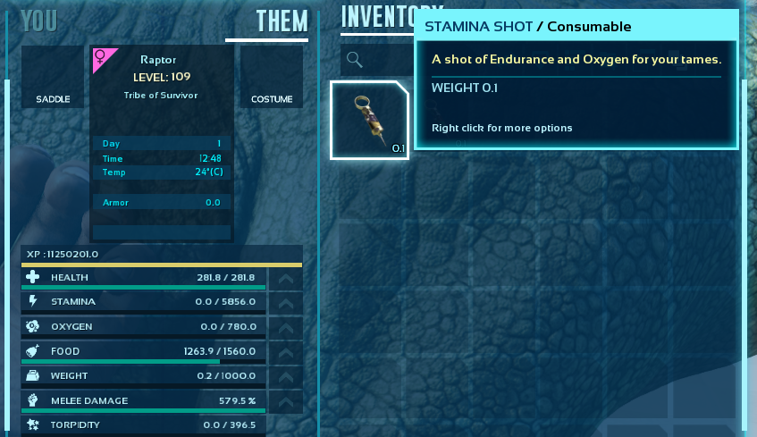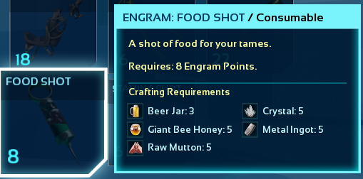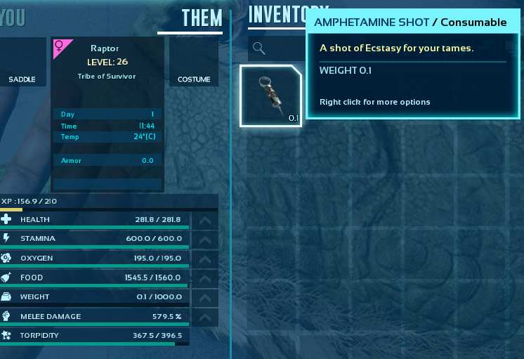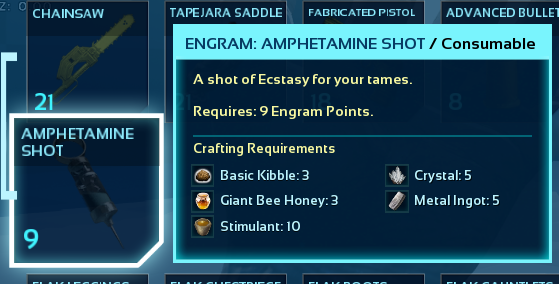 A mod to add various Dino needs related Injectors, to end all Dino needs. Satiation, Torpor Nullifier, Stamina/Oxygen recovery and Experience Boost.
