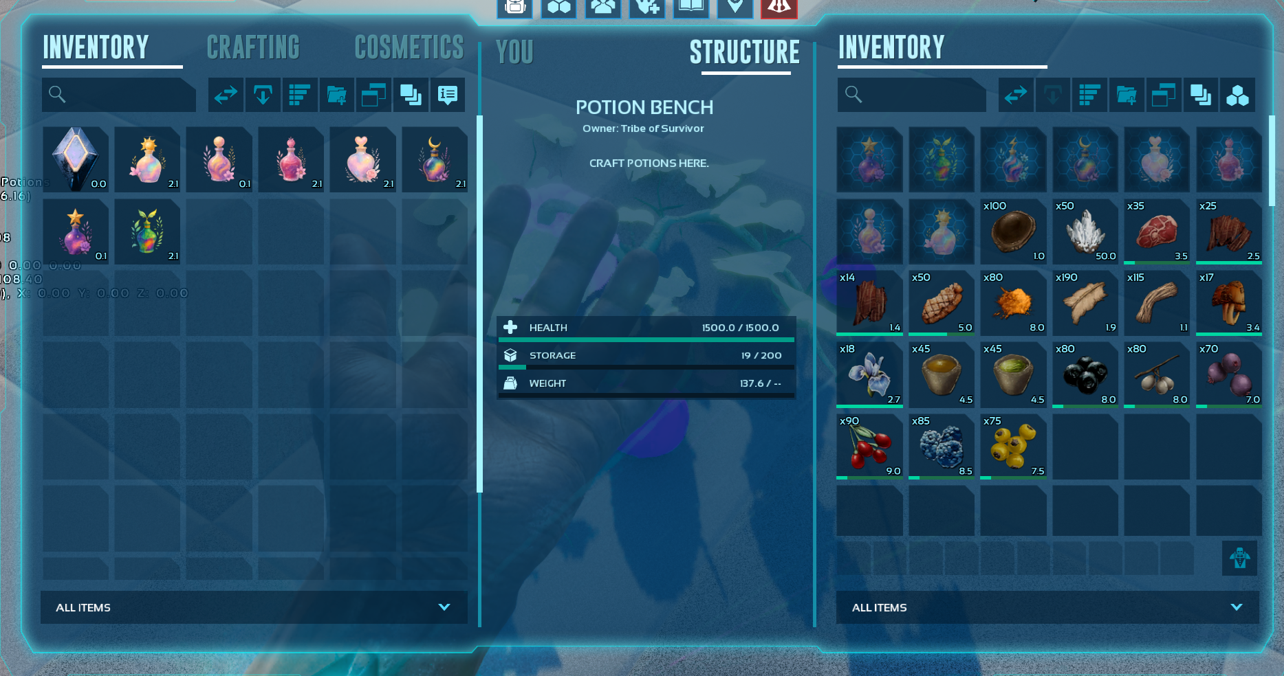 Magical potions for Ark: Survival Ascended, crafted with care to add unique buffs and effects to your gameplay.