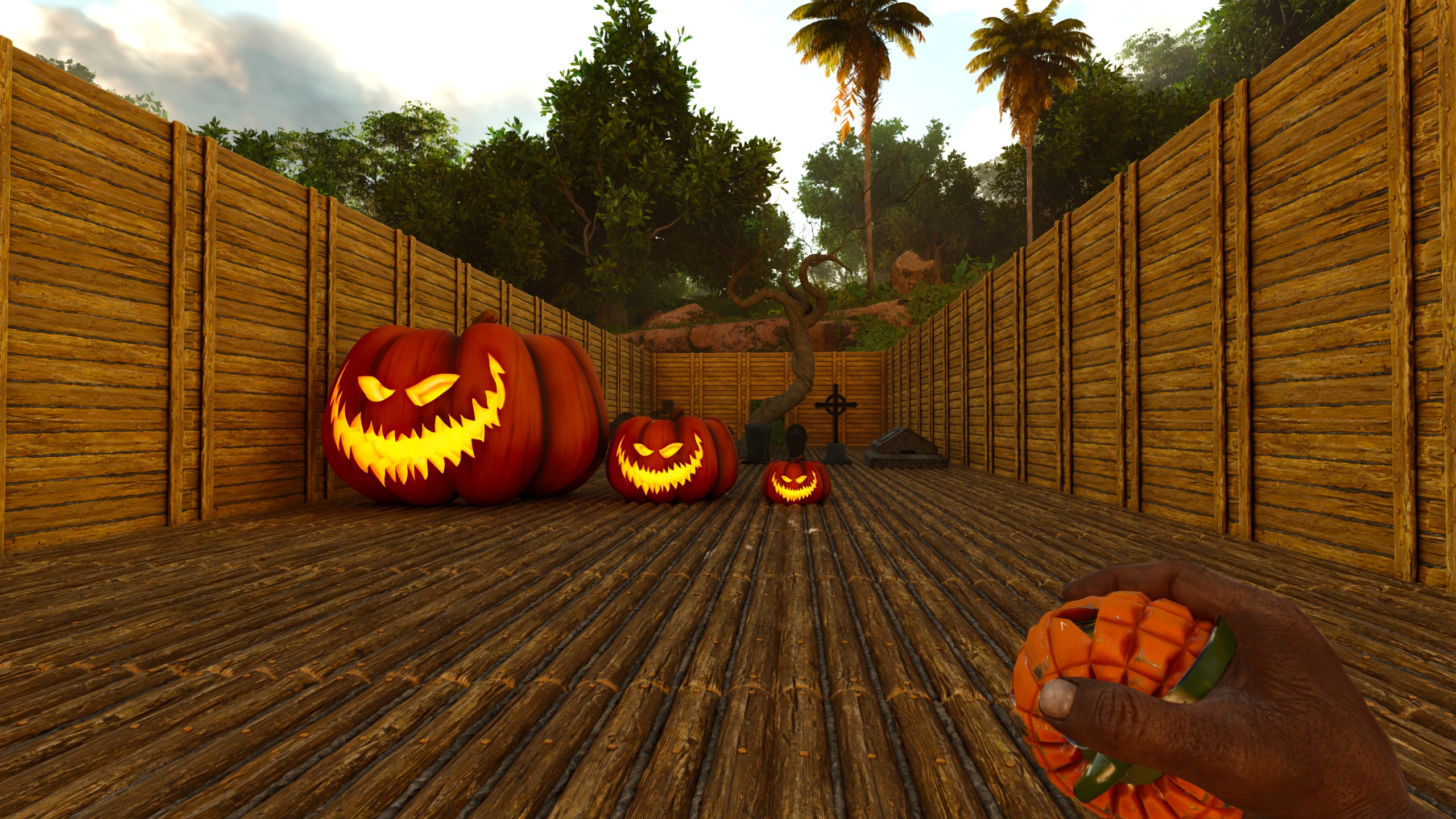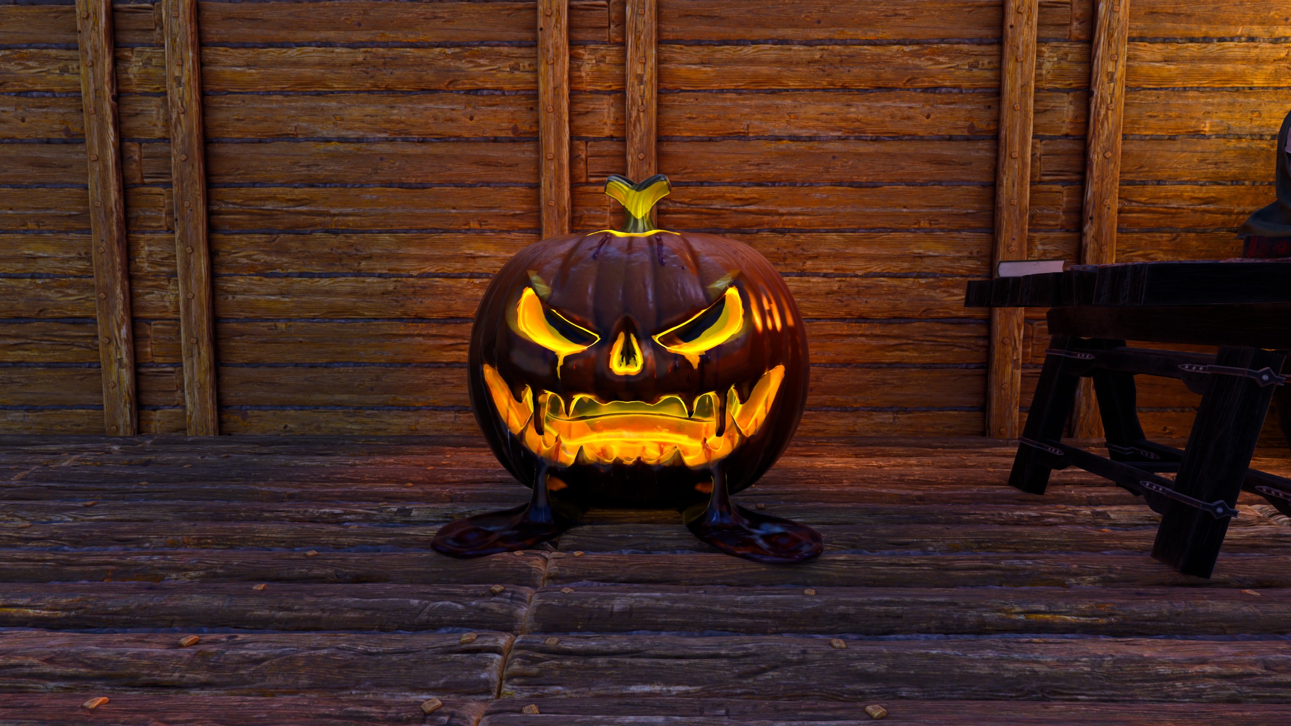 Adds many props and structures to fit the theme for Halloween.