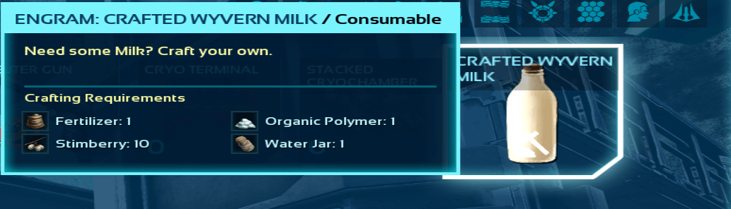 let you craft vanilla wyvern milk at your inventory
