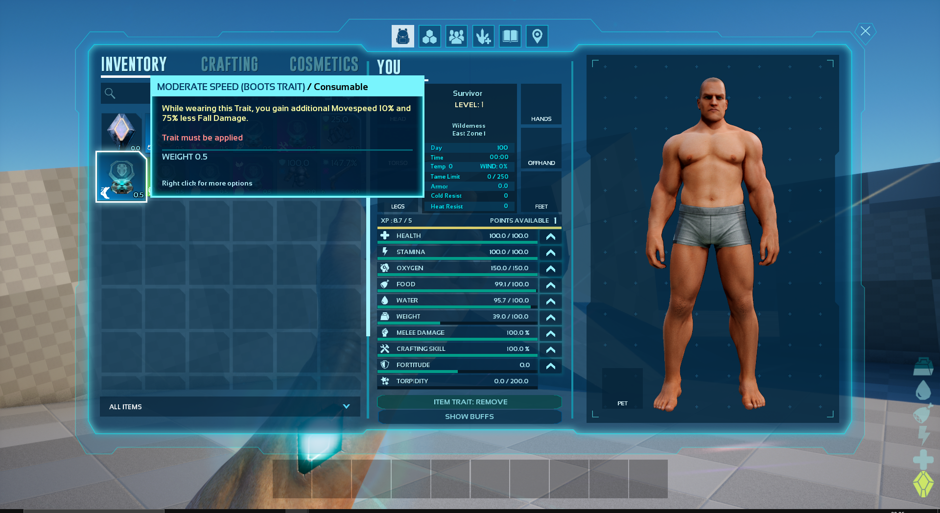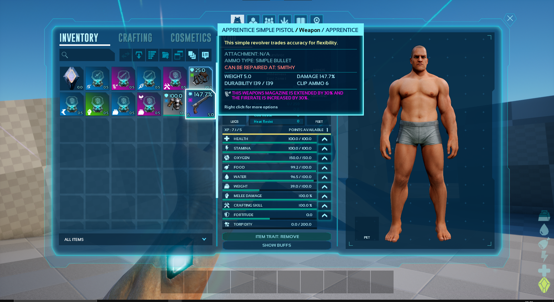 Allows to apply and remove Item Traits in your inventory. It also adds some custome Item Traits.