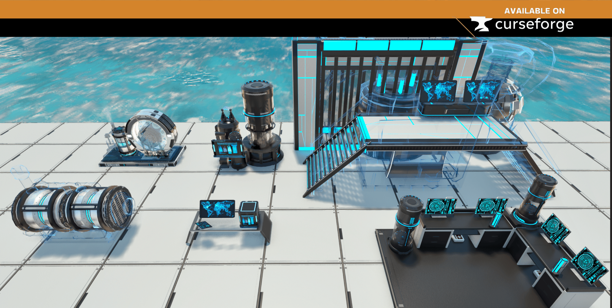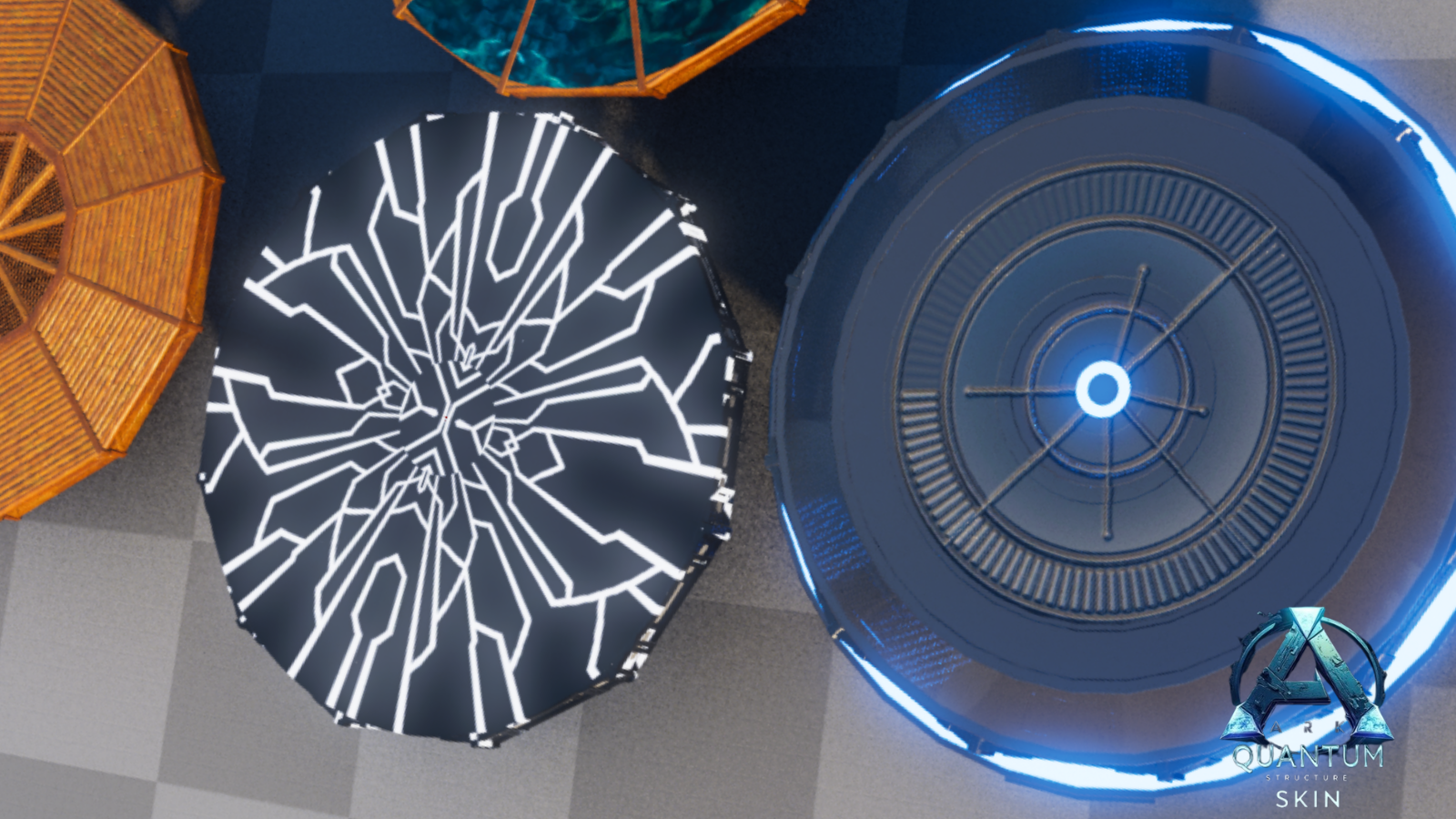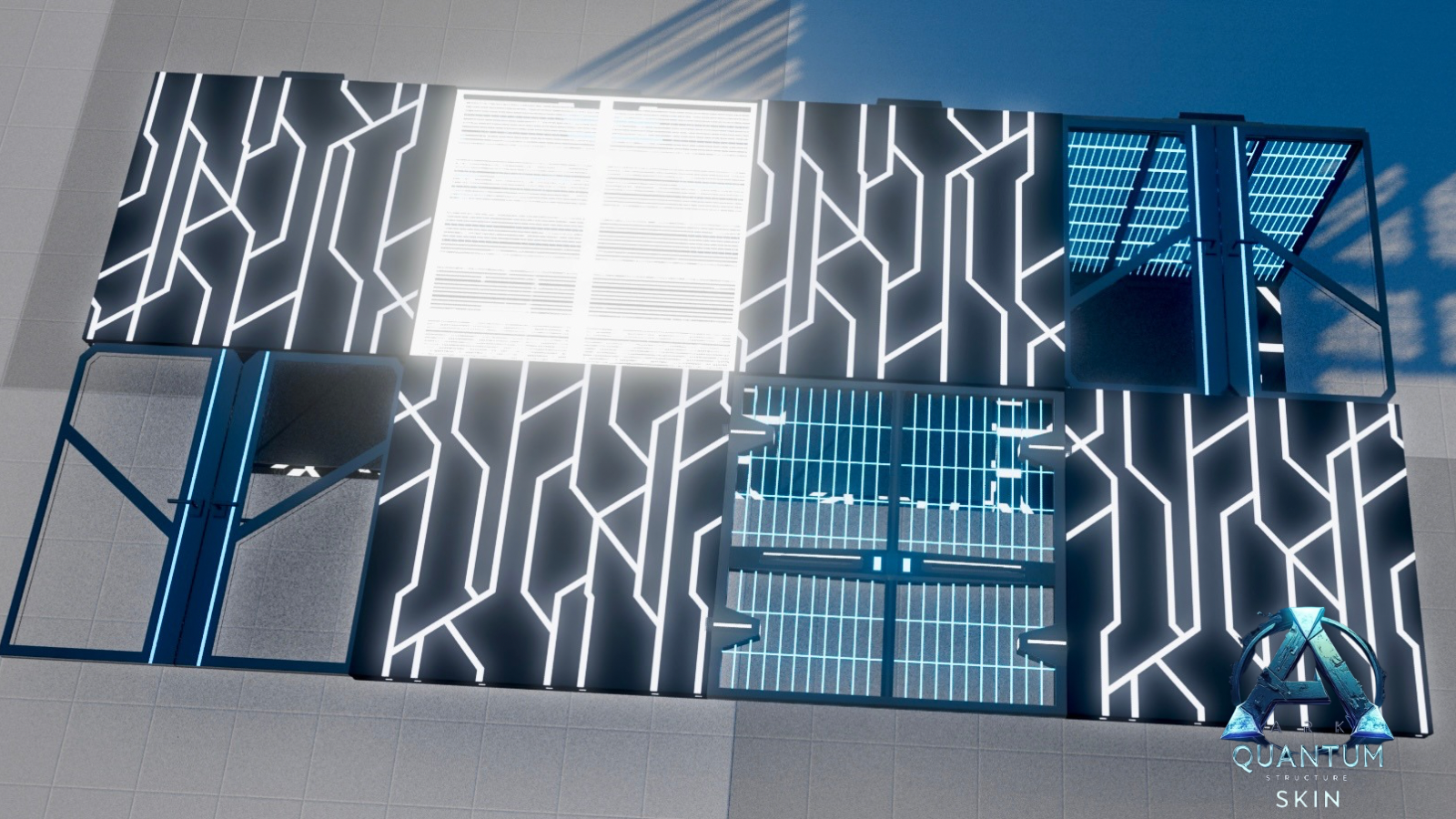 Skin set with a futuristic look. Can now swap almost any structure piece for a designated skin