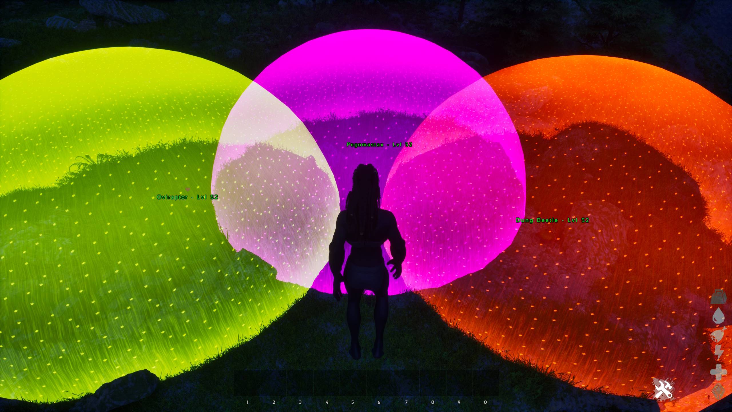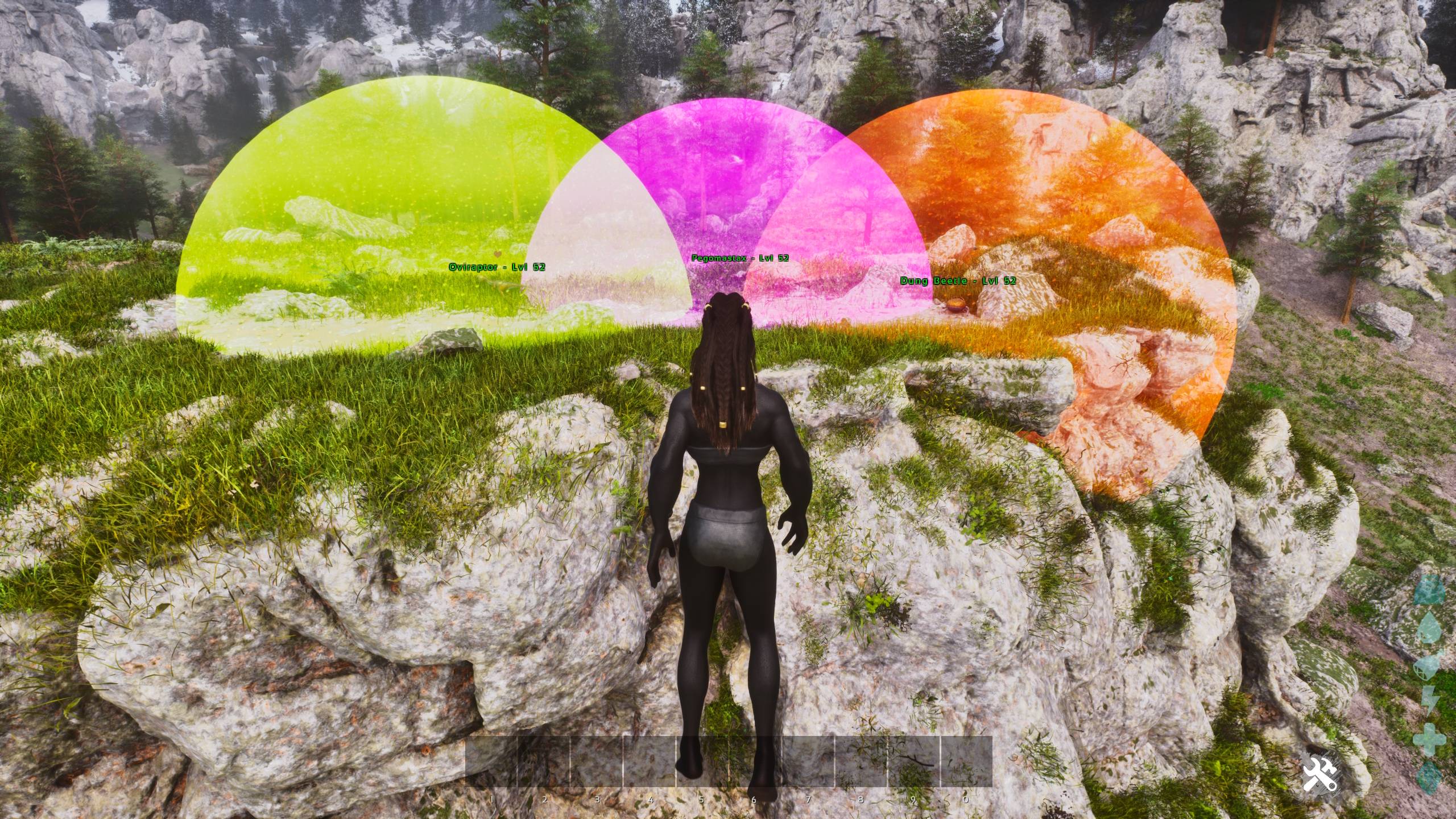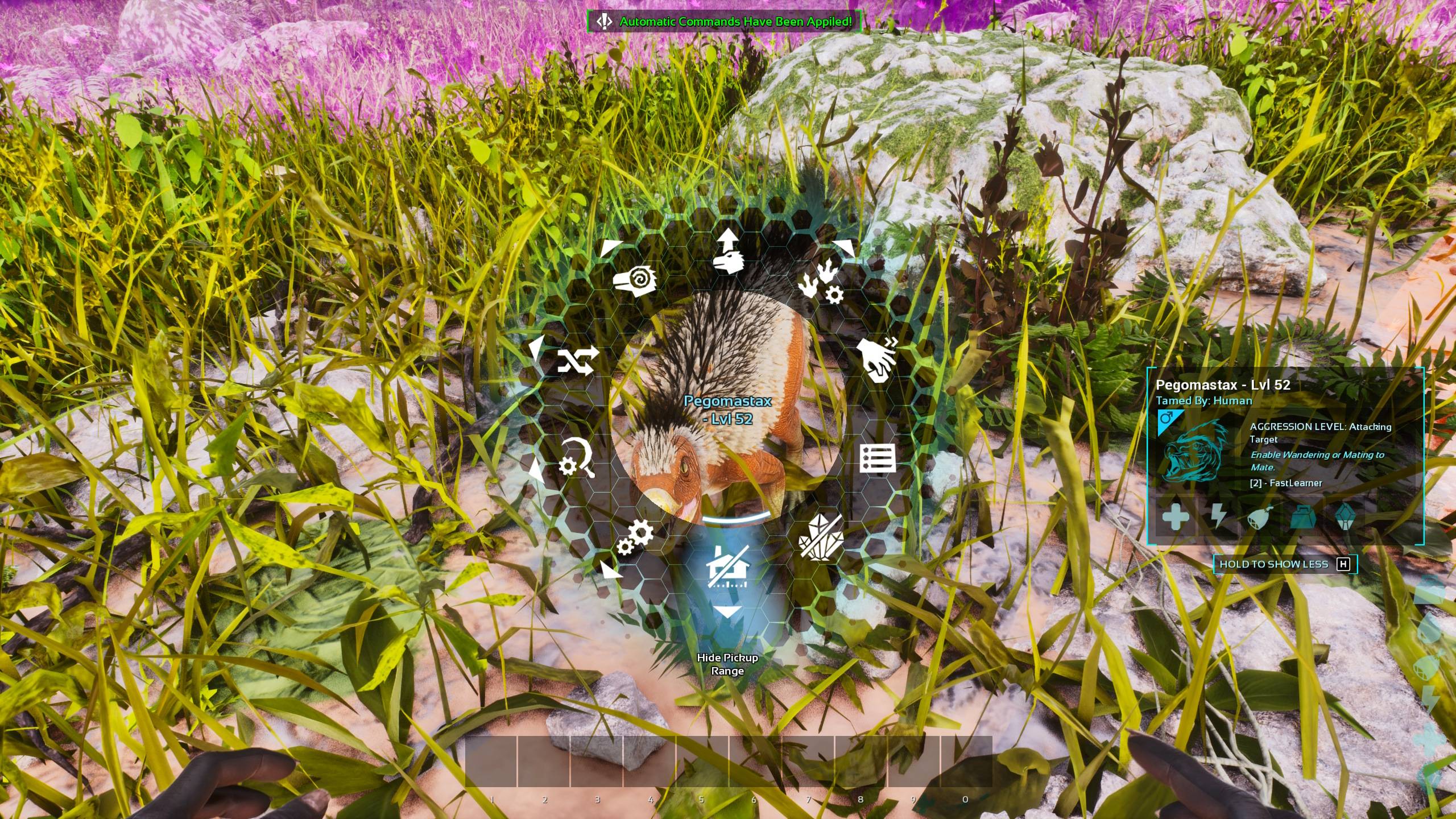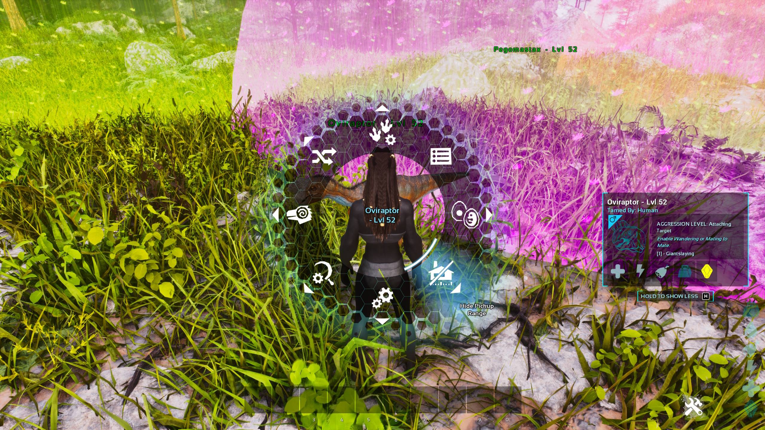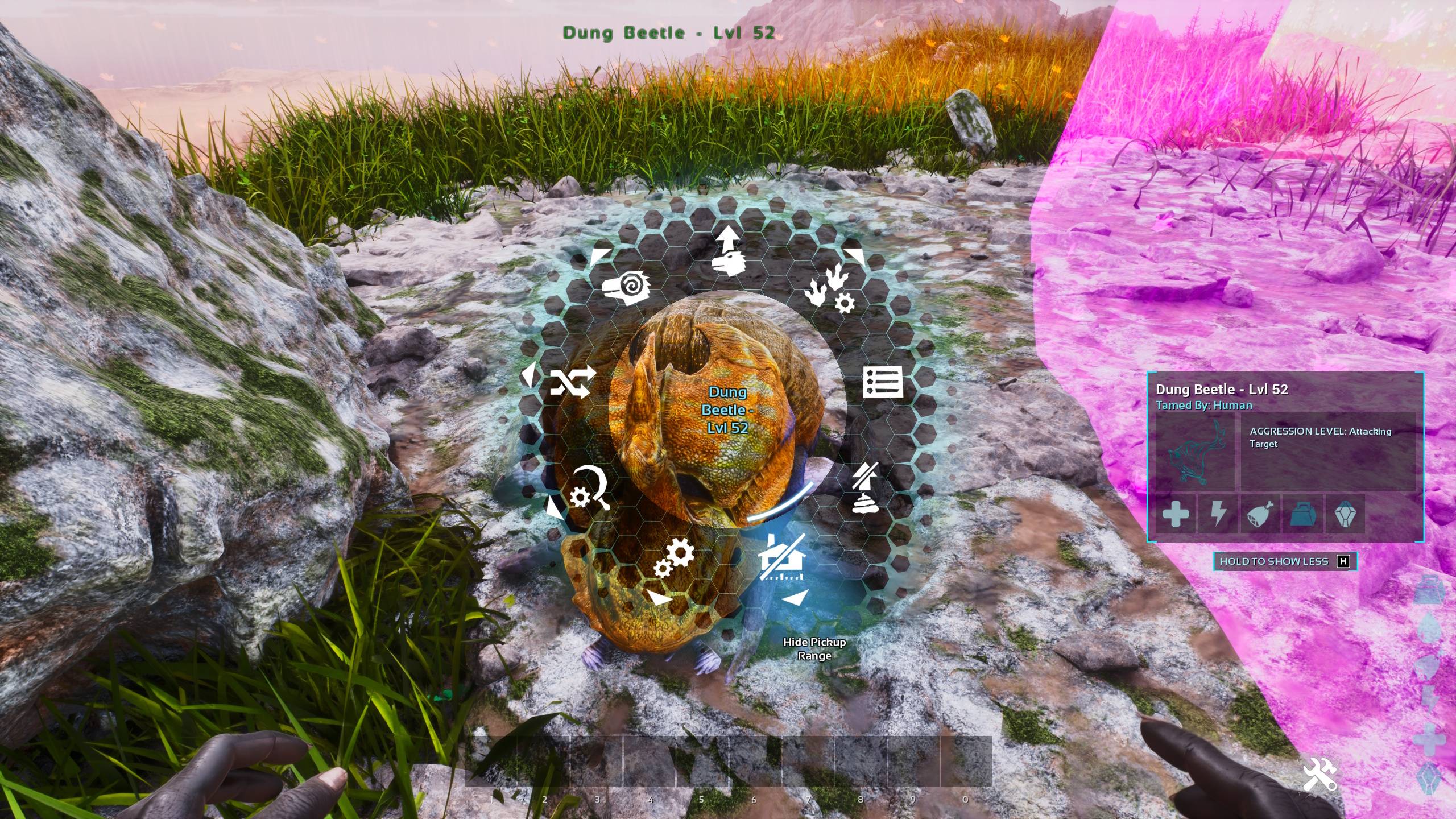 Adds pickup range indicators to Dung Beetles, Oviraptors and Pegomastax