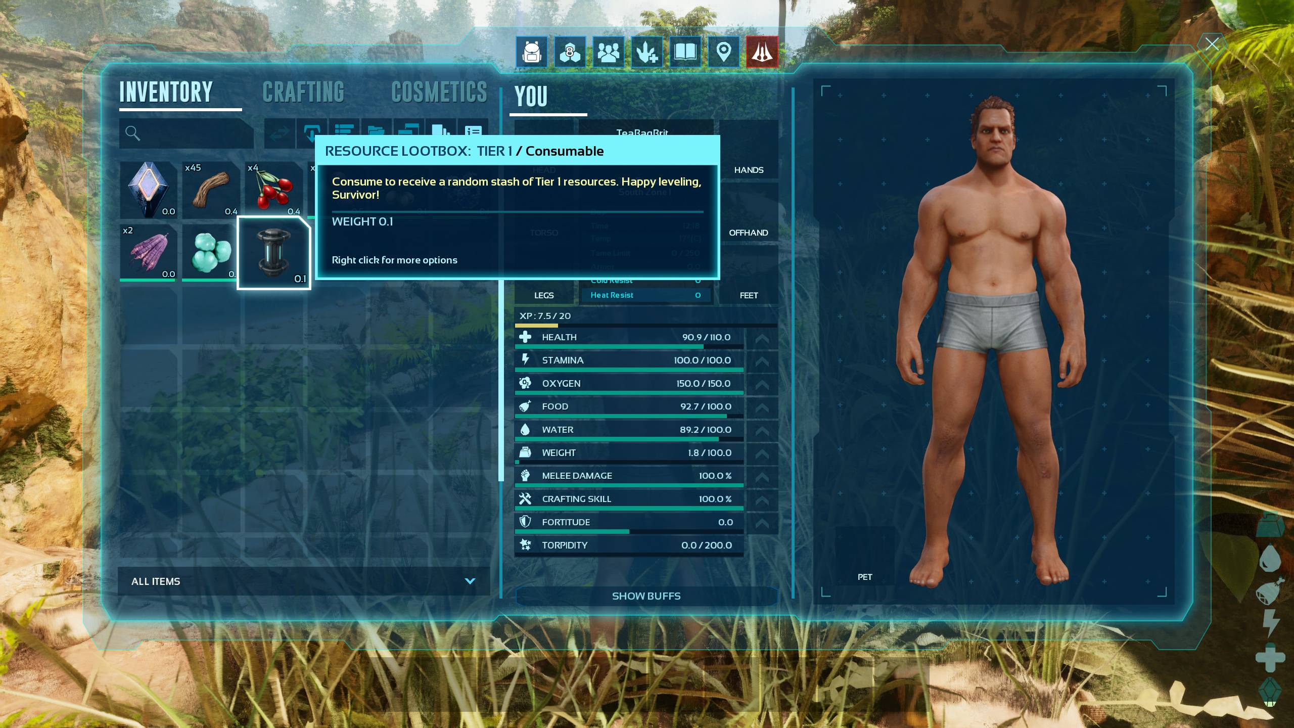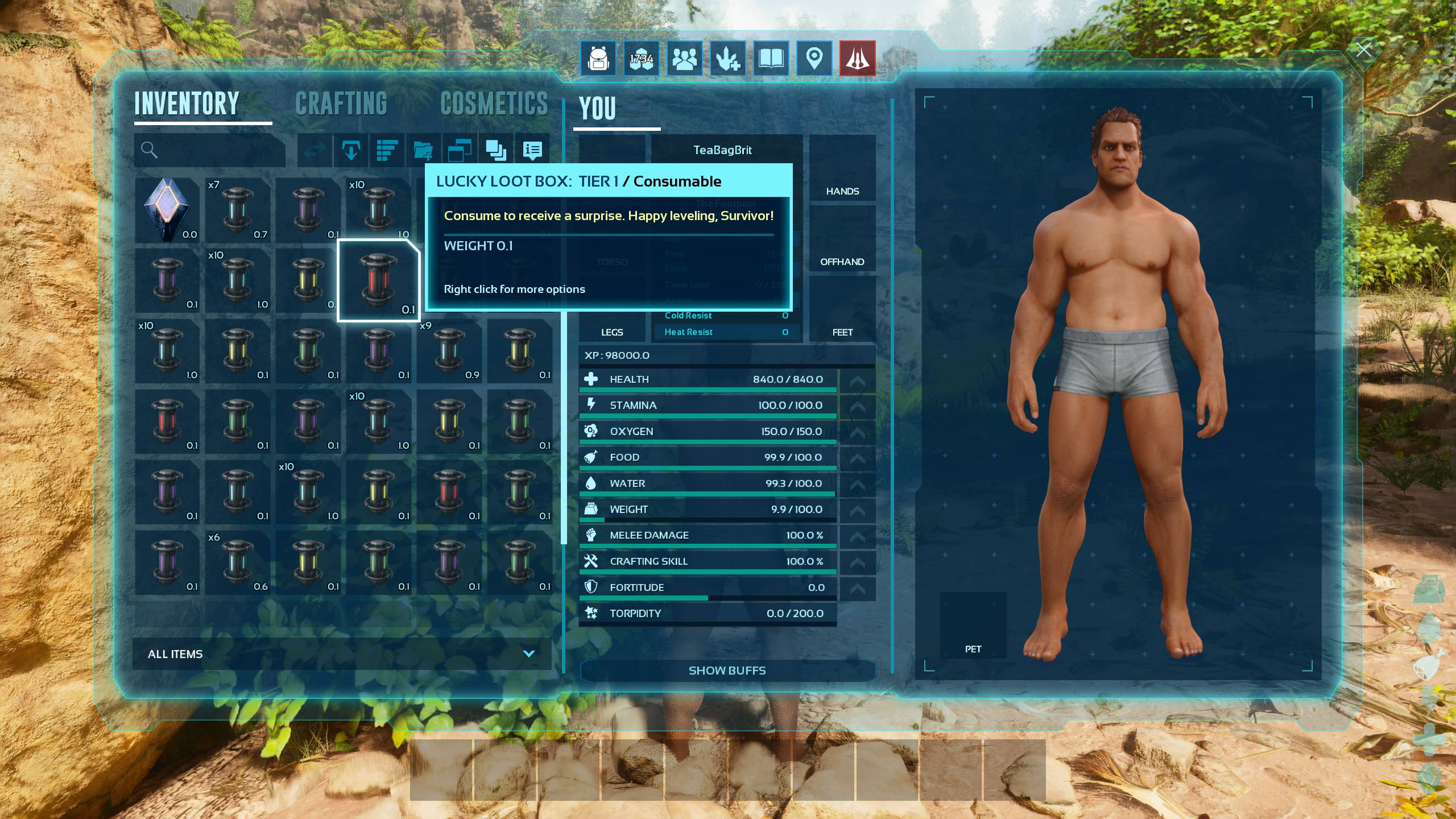 Level Up Loot Boxes gives your survivor a selection of “loot boxes” as they level, filled with resources, consumables, structures, gear and more – all balanced by level tiers so you don’t break progression.