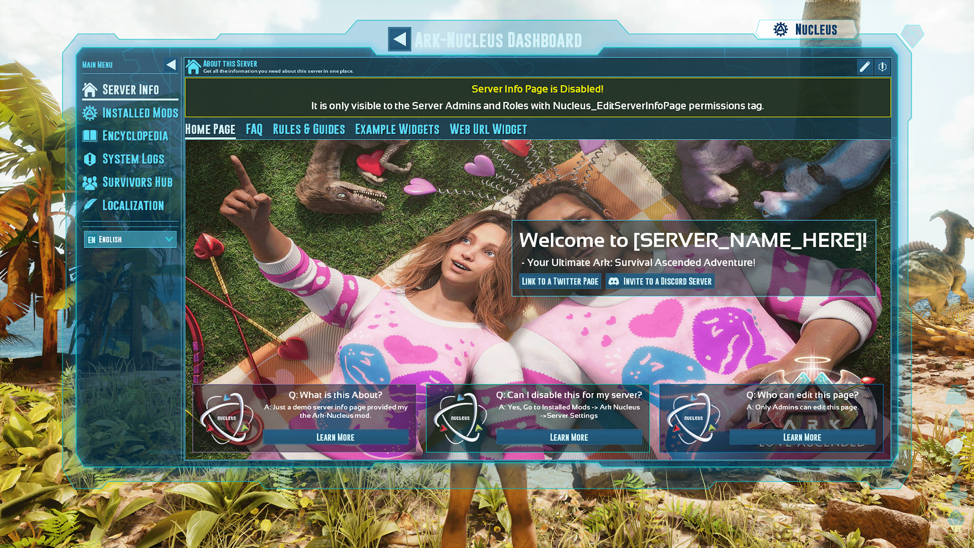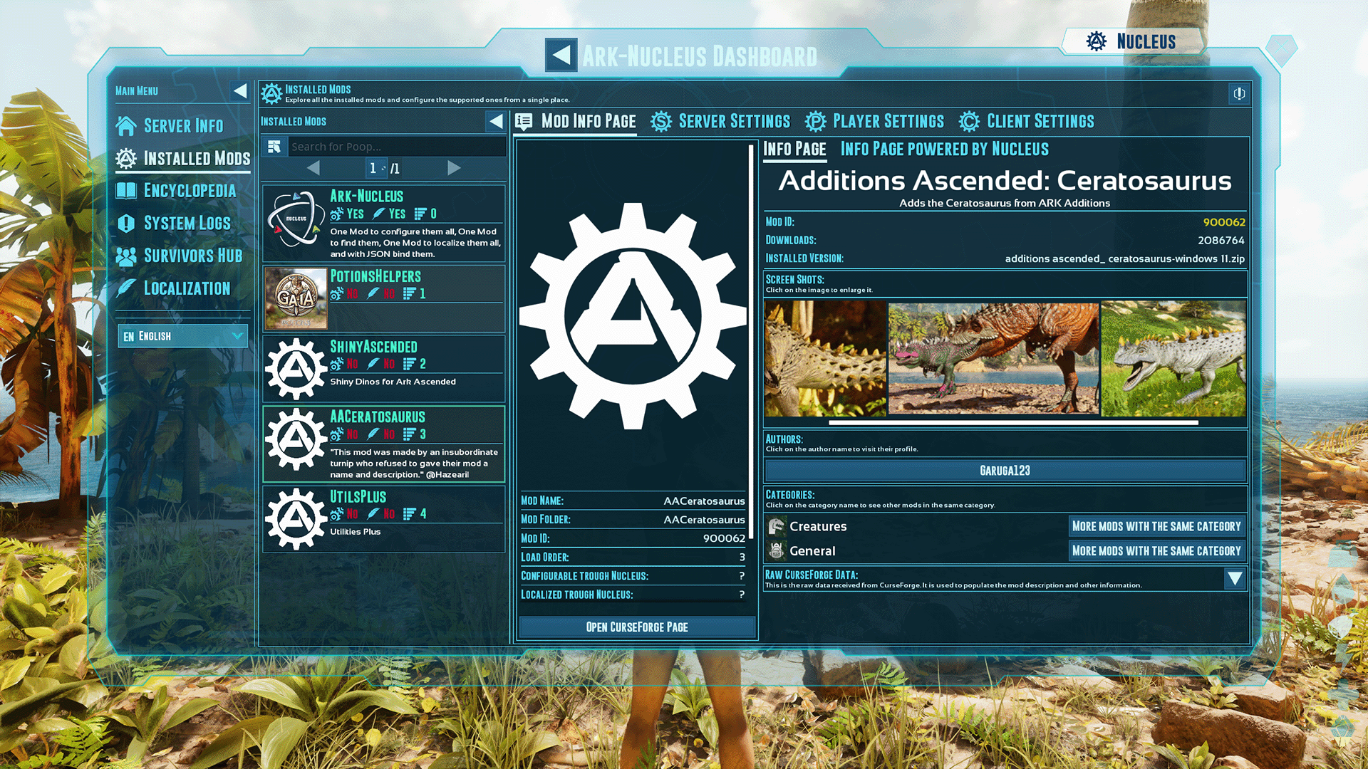 Qualify of life improvements for Admins and Players. Includes: QOL UI hacks, Admin Panel/Tools, Mod Overview, Item and Dino Encyclopedia and more. "One Mod to configure them all, One Mod to find them, One Mod to localize them all, and with JSON bind them."