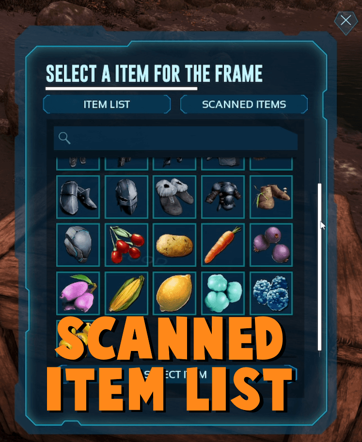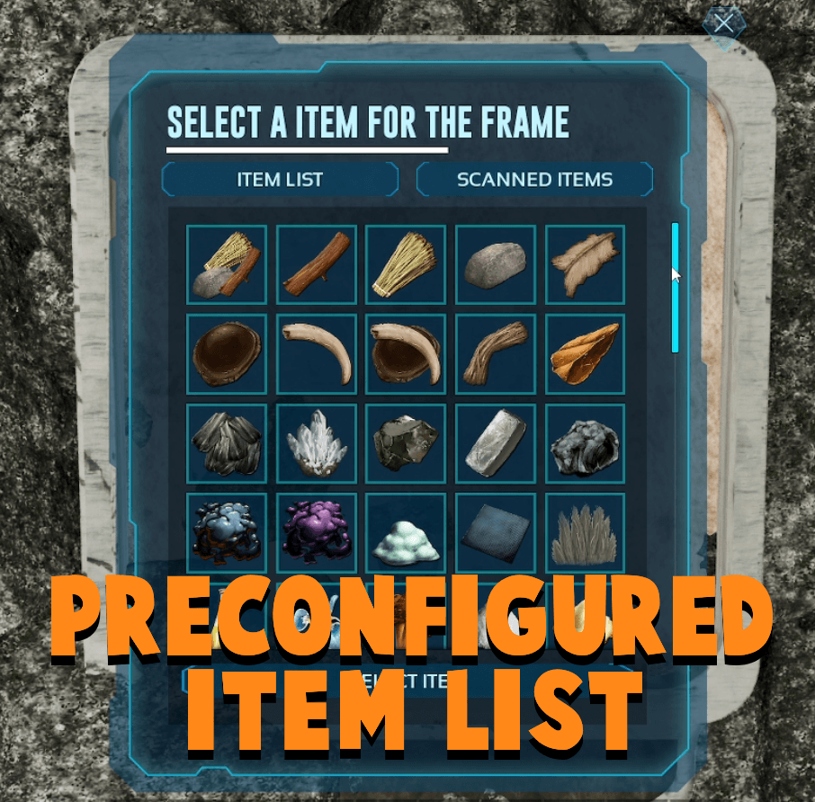 A functional Item Frame that lets you visually label storage, containers, and structures using item icons. Includes a base item list and a powerful proximity scan to display nearby stored items for easy organization.