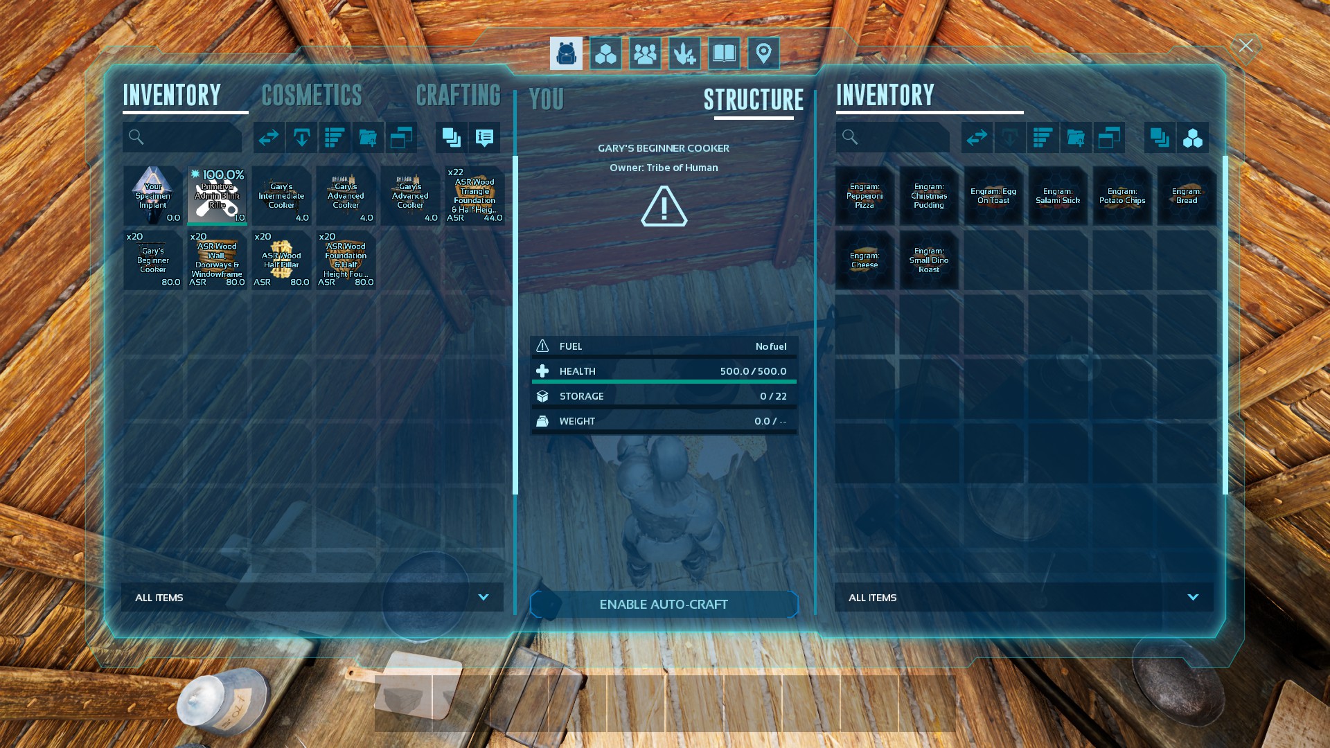 Gary's Cooking is an overhaul of arks cooking system providing buffs through different teirs of cooking