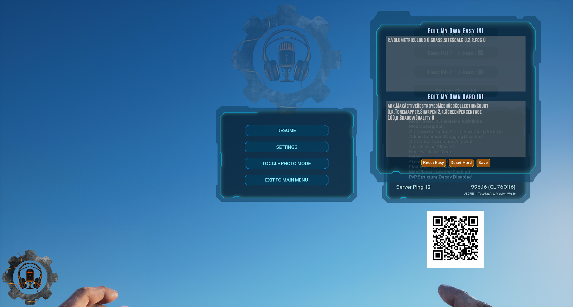 Adds a Pause Menu utilities panel that lets players apply performance and quality-of-life presets, while allowing server owners to configure shared commands and custom branding.