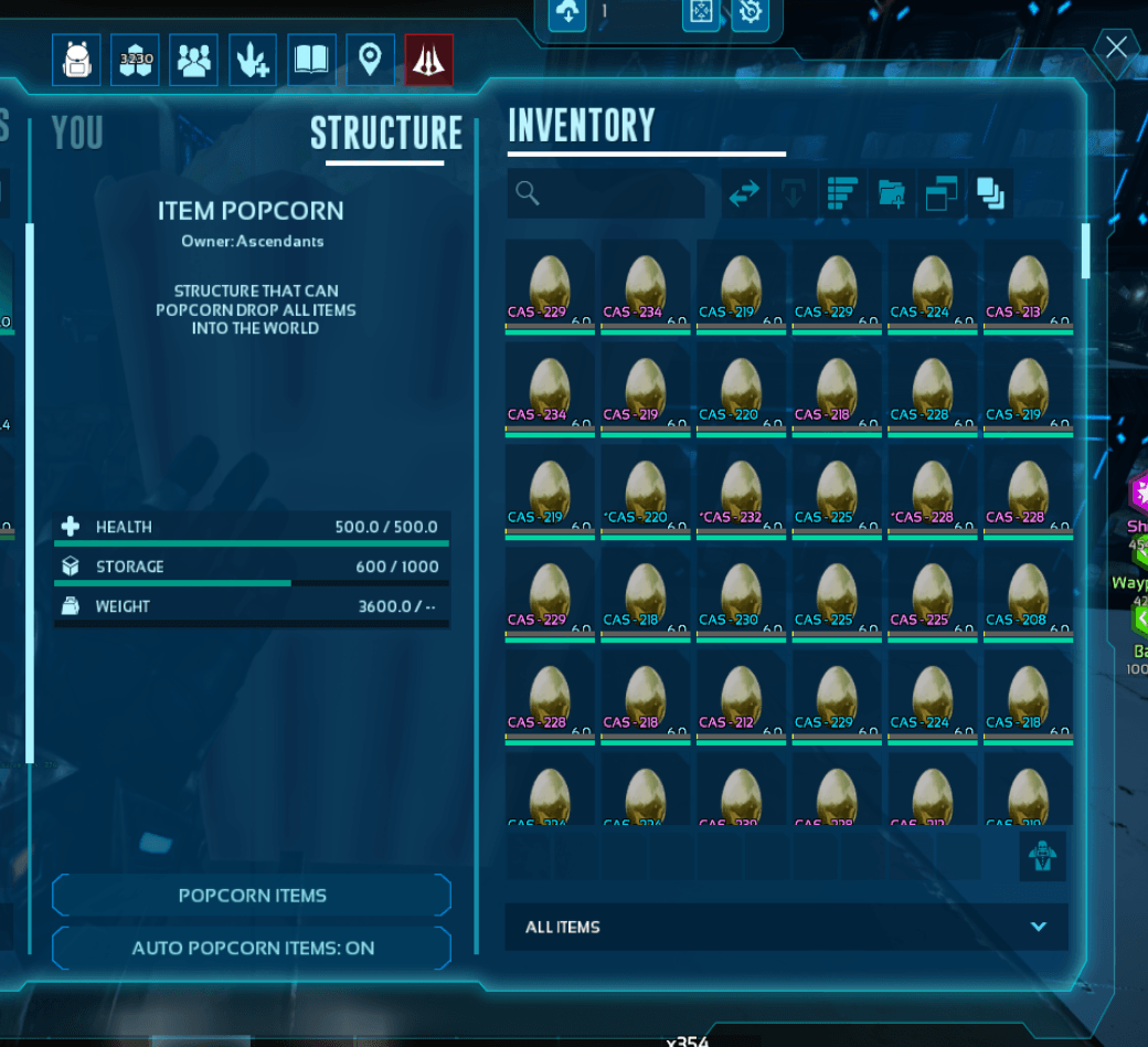 Structure that can popcorn drop all items into the world