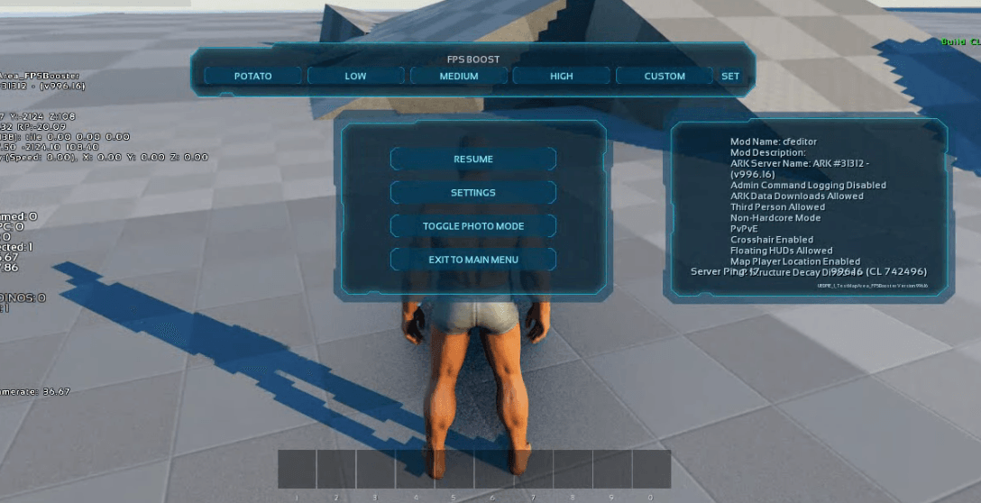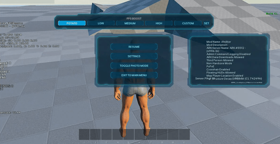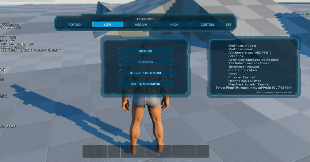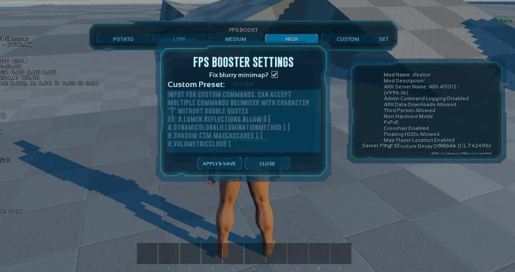Added Pause menu UI FPS Boost console command preset and custom preset can be set