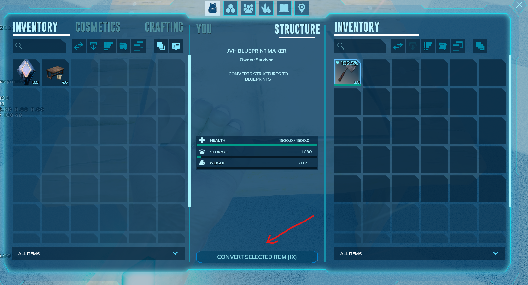 A bench that creates blueprints from items and structures
