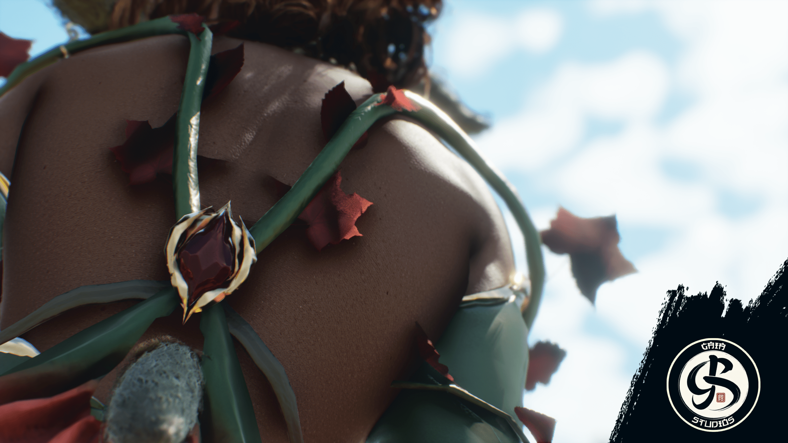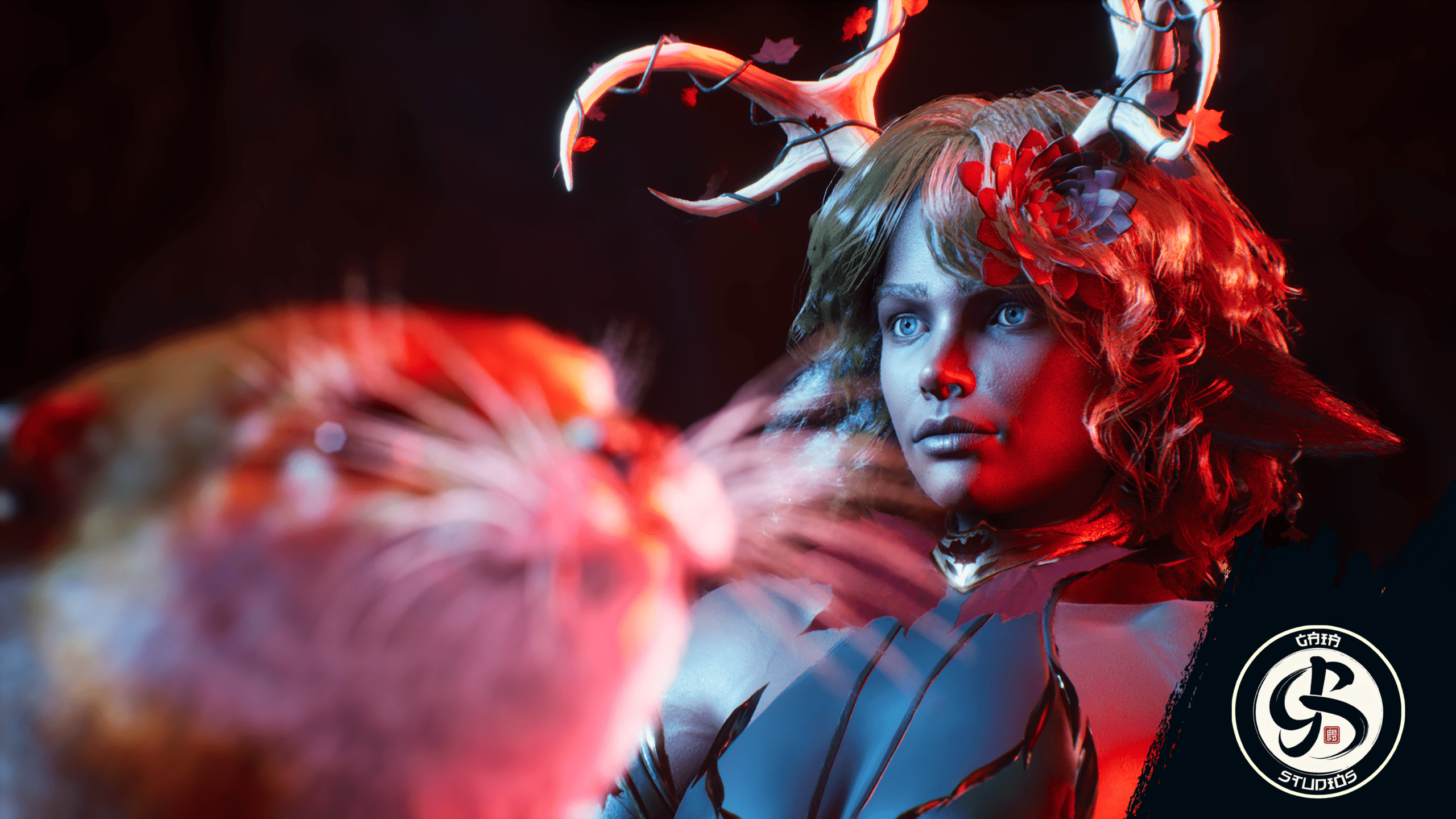 Features a customisable, nature-inspired character skin with mystical antler adornments.